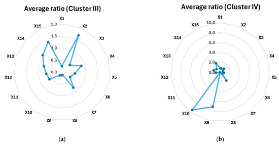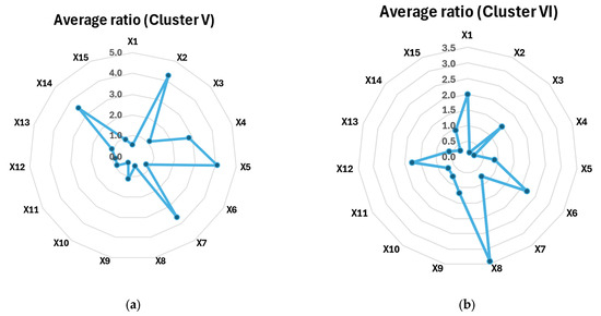 It is worth noting that there are no large collinear dependencies in the correlation matrix. The highest correlation coefficient is between X1 and X12 and amounts to 0.84, so it does not exceed 90%. This is a high positive dependency and is directly proportional to the increase in X1 fleet (passenger cars) as [%] of total fleet [BEV + PHEV], the value of X12 increases, i.e., the number of DC recharging points (ultra-fast level 1 and level 2) as [%] of total DC recharging points. On the other hand, the largest negative dependency is between X1 and X14, and it amounted to −0.42, which means that, with the increase in X1 fleet (passenger cars) as [%] of total fleet [BEV + PHEV], the value of X14 decreases, which is the number of LPG vehicles per LPG refueling point. The dependencies are presented in scatterplots (Figure 2a,b).