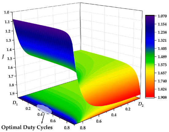 According to Equations (6), (8) and (16), the cost function is a function with the environment temperature and duty cycle as variables. To simplify the analysis, it is assumed that the environment temperature remains approximately constant over a period.