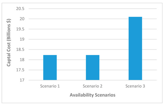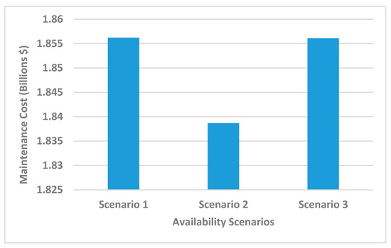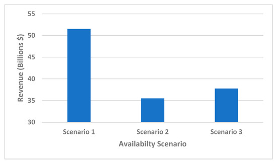 - Scenario 1, Baseline case: Availability is 100% or 1. This is an ideal case defined as a theoretical upper limit of the availability analysis.