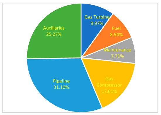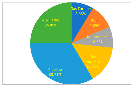 The operation and maintenance costs refer to the expenses associated with running and maintaining the compressor station and pipeline system under varying operating conditions, comprising both fixed and variable costs. As with other pipeline projects, after the construction and installation of the pipeline project, there will be operation and maintenance costs over the project’s duration. In this study, the operational lifespan of the compressor station and pipeline system is projected to be 30 years. The operating conditions of the compressor station equipment and fuel consumption expenses influence the operating costs. The fuel consumption cost is an essential component of the variable cost. It contributes to one of the project’s highest operating costs. It is usually evaluated separately from the maintenance cost. The gas turbines shaft powers, fuel flows and turbine entry temperatures required to drive the gas compressors at varying ambient conditions have been obtained from the gas turbine performance simulation using TURBOMATCH 3.0 software. They are applied to evaluate the operation and maintenance costs. These costs were assessed by compressor station availability analysis in terms of the following scenarios: