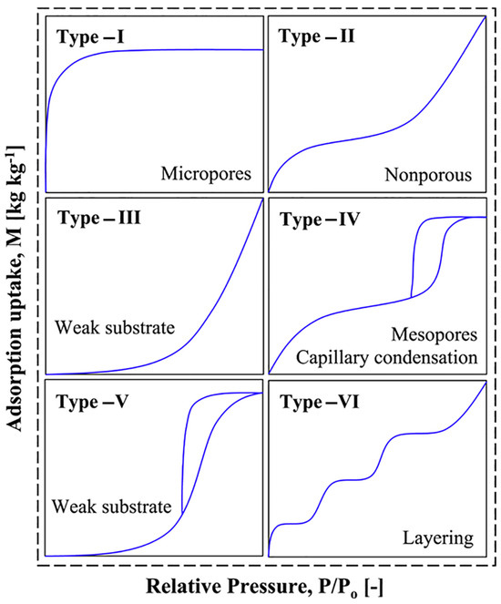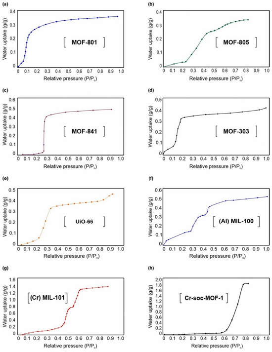 Although there are no standardized selection criteria for AWH adsorbents, certain key factors are generally considered when evaluating their suitability. Among these, a high water adsorption capacity and the presence of Type IV or Type V (S-shaped) adsorption isotherms are particularly desirable as IUPAC classification [82]. These isotherm profiles indicate the presence of capillary condensation and multilayer adsorption, which are essential for efficient water uptake under varying humidity conditions. Additionally, adsorbents must demonstrate long-term stability, retaining their adsorption capacity over multiple adsorption–desorption cycles without significant structural degradation.