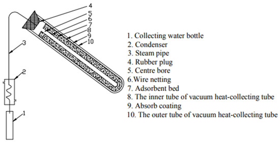 - Liang, H.B.; Zhao, H.Z. Experimental Study on Adsorption Water Tube from Atmosphere Using Solar Energy. Adv. Mater. Res. 2013, 694, 712–715. [Google Scholar] [CrossRef]