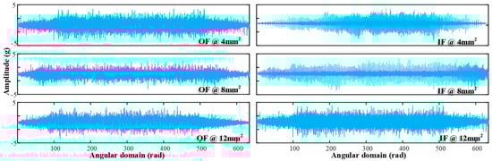 Angular domain signals obtained from six different bearing fault vibration signals.