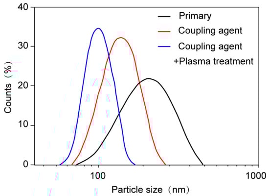 Particle size distribution diagrams of nanofillers before and after surface modification.