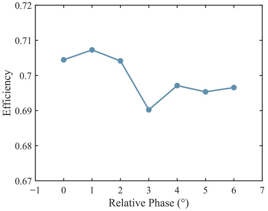 Influence of circumferential relative phase between stator and rotor domains on simulated turbine efficiency.