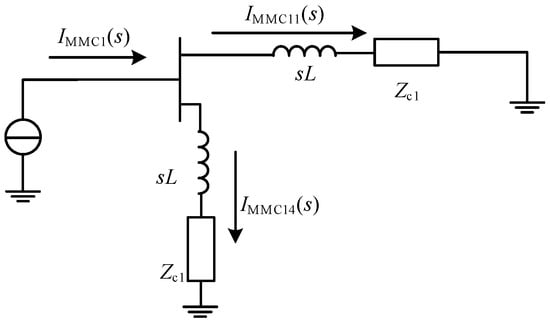 To examine how the MMC1 fault current is apportioned between Lines 1 and 4, the complex-frequency (s) domain is employed. The current-propagation model in this domain is shown in Figure 3 [12].