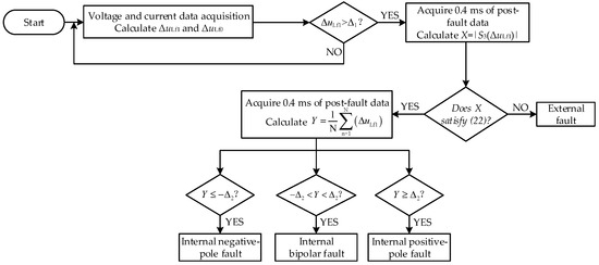 This section presents the protection scheme in three parts—starting criterion, fault-identification criterion, and pole-selection criterion—and then provides the overall flowchart.