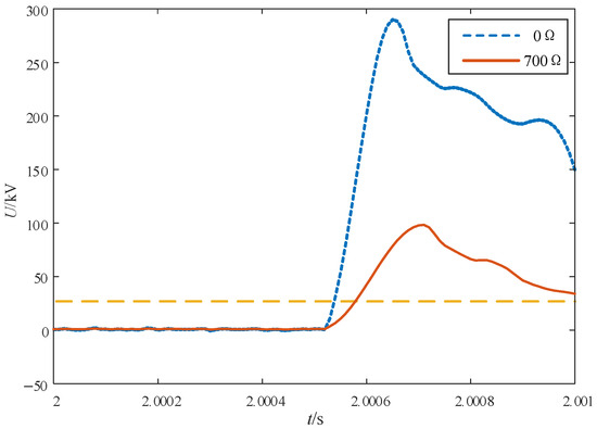 Under high-resistance faults, the fault current becomes very small, and the voltage surge across the current-limiting reactor decreases accordingly. When the fault resistance is close to 700 Ω, the electrical quantities on which the protection criterion depends move toward their preset pickup levels, compressing the safety margin. A variable that exceeds the threshold by a wide margin for low-resistance faults may therefore only marginally surpass it in the high-resistance case. Once field noise and component-tolerance errors are considered, there is a real possibility that the index will fall short of the threshold, in which case the relay will refuse to operate and the detection accuracy for internal high-resistance faults will be compromised.