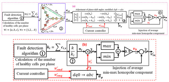 The expressions for the stator’s unbalanced voltages and currents generated by the CHB inverter during abnormal modes are given in Equations (9a) and (9b).