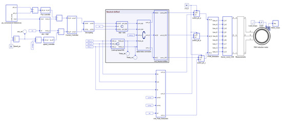 In [12,13], the Neutral-shifted approach was introduced to enhance the reliability of the CHB inverter. Based on the number of operative cells per phase, this method adjusts the phase-shift angles of the PWM reference voltages to rebalance the inverter’s output LL voltages while keeping the LN voltages unbalanced. The experimental results indicate that the magnitudes of the current harmonics increase as the number of failed cells rises. But the impacts of the Neutral-shifted approach on the spectral characteristics of the CHB inverter and the motor torque spectrum have not been covered.