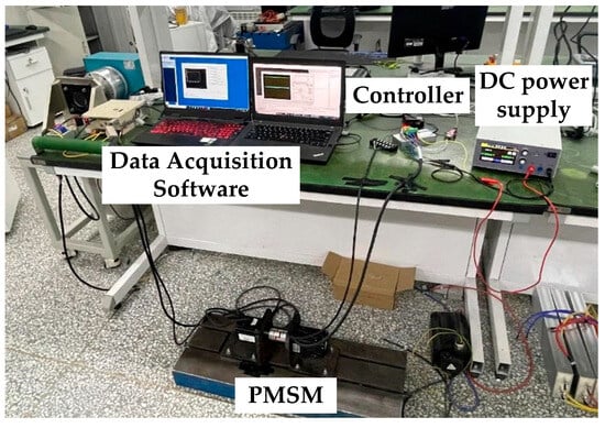 In the modern industrial control systems, permanent magnet synchronous motors (PMSMs) are widely adopted due to their simple structure, high power density, and low torque ripple [1,2,3]. These advantages make PMSMs ideal for applications requiring high efficiency and precise control [4,5,6]. However, the design of a current loop—especially current controller—is closely tied to the electrical parameters of motor, such as stator resistance and inductance, as well as the equivalent delay introduced by the control system. In model-based strategies like model predictive control or deadbeat control, accurate parameter knowledge is essential to predict the current trajectory of motor and generate appropriate control voltage vectors. Even for the widely used proportional–integral (PI) controllers in industrial settings, reliable motor parameters are a prerequisite for applying pole-zero cancellation, which is often used to reshape the closed-loop response [7,8,9,10,11]. This method enables the elimination of dominant time constants in motor model, thereby improving system dynamics and ensuring more precise and stable current regulation [12].