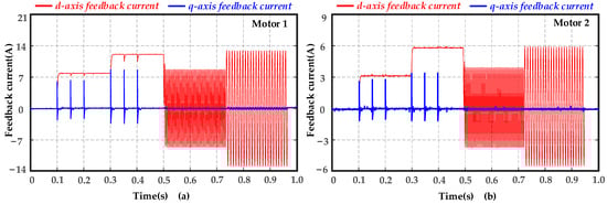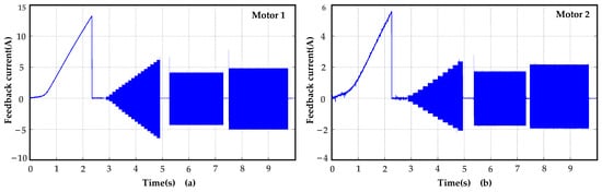 Feedback current waveform of motors using the proposed method. (a) Motor 1. (b) Motor 2.