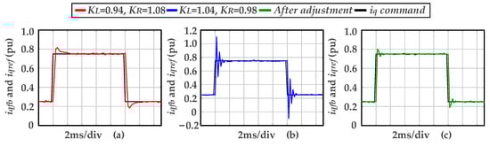 In Equation (16), LS and RS represent the resistance and inductance parameters obtained from the offline identification in Section 2. |Gmismatch(jω)| and ∠Gmismatch(jω) denote the magnitude and phase of the open-loop transfer function of the current loop to be adjusted, respectively. These values can be directly obtained from the Bode plot derived through frequency sweep analysis. TΣS is the delay time constant identified in Section 3. L and R are the adjusted inductance and resistance parameters.
