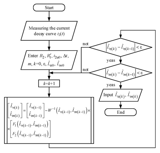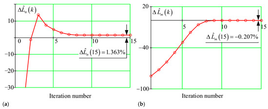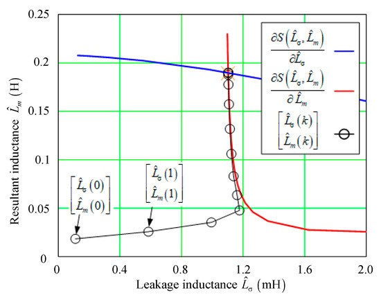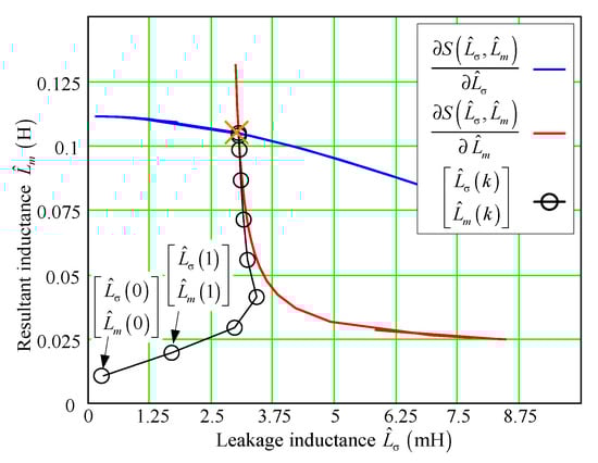 The Newton method (tangent method) is applied to solve the problem of the target function minimization (24) and finding the inductances desired estimates [34,35]. Newton’s method for finding two unknowns x1, x2 is applicable to a system of nonlinear equations of the following form: