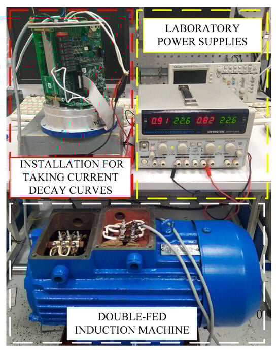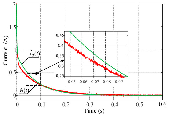 It should be noted that the errors σi2 between the reconstructed and experimental current curves depend more on the assumptions made when creating the adaptive model of the doubly fed induction machine, as the setup presented in the article, with the components used, allows obtaining the decaying current curve i2(t) with an error of no more than 1%, as shown in Figure 11. When using other equipment, the authors recommend employing simple digital filtering methods, such as moving average or median filters, to improve the quality of the obtained current curve i2(t).