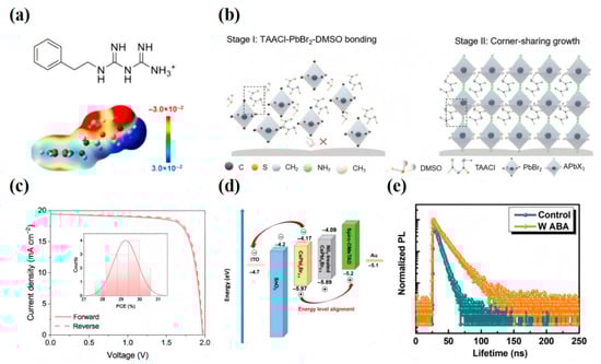 - Gong, C.; Chen, X.; Zeng, J.; Wang, H.; Li, H.; Qian, Q.; Zhang, C.; Zhuang, Q.; Yu, X.; Gong, S.; et al. Functional-group-induced single quantum well dion-jacobson 2D perovskite for efficient and stable inverted perovskite solar cells. Adv. Mater. 2024, 36, 2307422. [Google Scholar] [CrossRef]