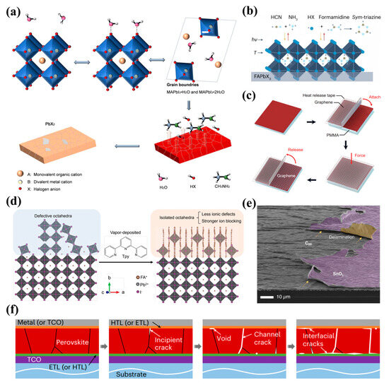 - Li, Q.; Zheng, Y.; Wang, H.; Liu, X.; Lin, M.; Sui, X.; Leng, X.; Liu, D.; Wei, Z.; Song, M.; et al. Graphene-polymer reinforcement of perovskite lattices for durable solar cells. Science 2025, 387, 1069–1077. [Google Scholar] [CrossRef]