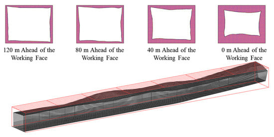 As shown in Figure 8, with the progress of mining, the originally designed trapezoidal cross-section of the roadway is transformed into an irregular shape.