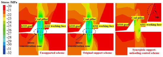 Based on the proposed synergistic support–unloading control approach and the comparison of numerical test results under three scenarios, combined with practical engineering experience, engineering recommendations for the on-site synergistic support–unloading control method could be put forward.