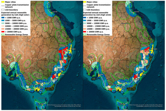 The following supporting information can be downloaded at https://www.mdpi.com/article/10.3390/en18164361/s1, “Maps”: High-resolution images of the maps presented in this paper, plus additional sensitivity analysis results, in JPG/PNG format; “Statistics”: Detailed spreadsheets covering the results for each LGA and federal electorate.