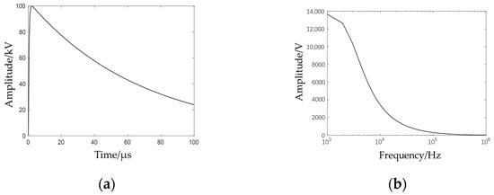 Lightning impulse voltage time-domain and frequency-domain diagrams: (a) time-domain diagram; (b) frequency-domain diagram.