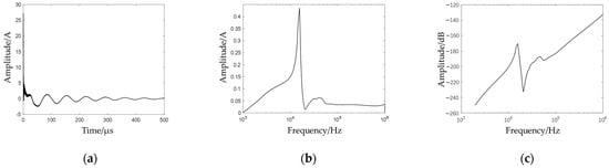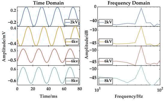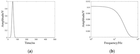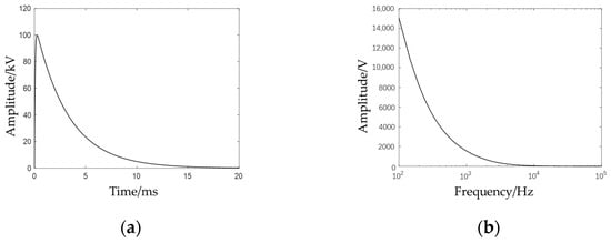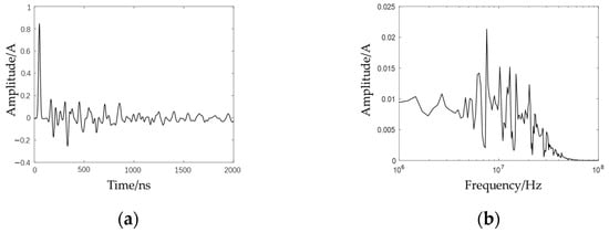Partial discharge excitation time-domain and frequency-domain diagrams: (a) time-domain diagram; (b) frequency-domain diagram.