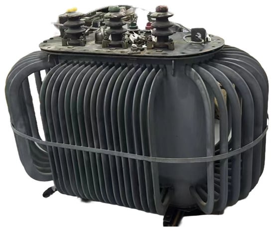 Following the simulation, this study used a 250 kVA three-phase Yyn0 oil-immersed distribution transformer (Figure 13) for impulse voltage, power-frequency voltage, and partial discharge tests. By combining the test results, the response characteristics of core grounding current under different electric stresses were investigated.