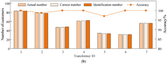 Accuracy of the proposed two-stage transformer–customer relationship identification. (a) Preliminary identification accuracy of Stage 1. (b) Refined identification accuracy of Stage 2.
