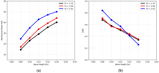 The natural period of the system (Tn, Table 6) is a fundamental parameter in designing and analyzing wave energy converters (WECs). The natural period is the time required for the system to complete one full oscillation, when resonating with incident waves. For the WEC prototype, an oscillation period was imposed on the buoy to measure the torque and thus calculate the generated mechanical power. This period was determined experimentally to ensure the device was synchronized with the wave frequencies, to maximize energy absorption.