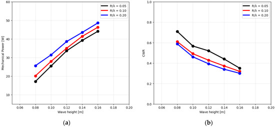 In addition to the analysis of efficiency versus wave height, a complementary analysis of hydrodynamic efficiency (ϵ) versus wave height (Hsc) was conducted. From this analysis, detailed in Appendix B, it is seen how efficiency varies across different wave heights, and identifies trends that reinforce the findings related to the wave period. The results suggest that (1) higher wave heights consistently improve the hydrodynamic performance of the device, particularly for medium wave periods, and (2) efficiency decreases for very short, or very long, wave periods, consistent with the nonlinear phenomena observed in the resonance analysis. For details, see Figure A1 in the Appendix B.