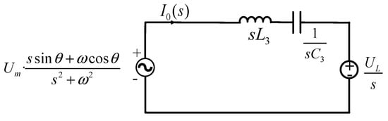 Assuming that i0 in Figure 5 operates in CCM, the equivalent circuit configuration during the positive half-cycle of i0 is illustrated in Figure 6.
