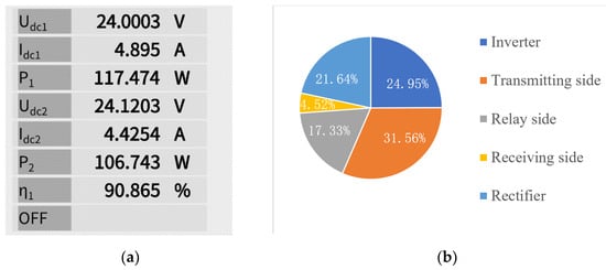 The measurement results obtained from the power analyzer and the system loss distribution are illustrated in Figure 13a and Figure 13b, respectively.