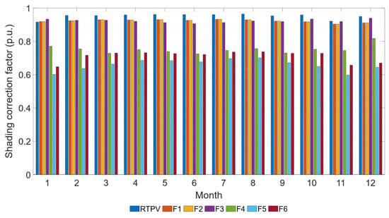 Shading correction factor aggregated by month and subsystem.