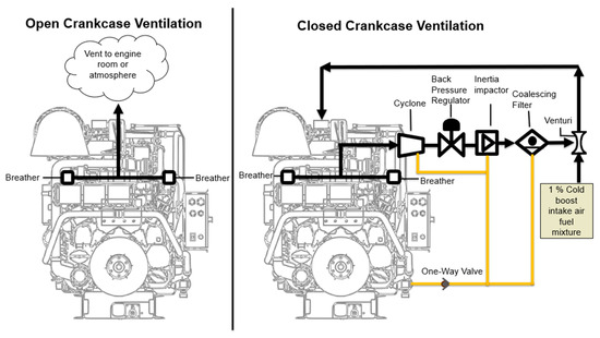 7]. If not properly managed, CCG can accumulate in the engine crankcase and cause engine crankcase over-pressurization, potentially damaging oil seals and degrading engine performance. In most industrial engines, the conventional Open Crankcase Ventilation (OCV) system vents CCG directly to the atmosphere to prevent engine crankcase over-pressurization (