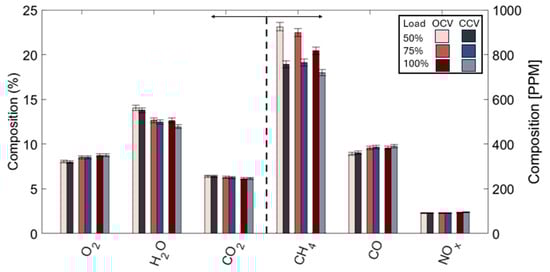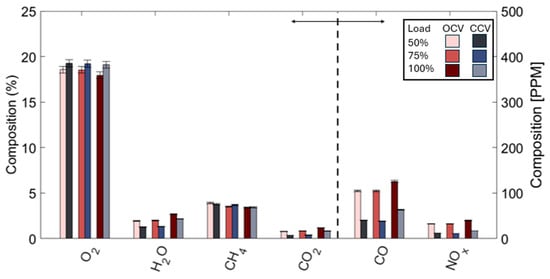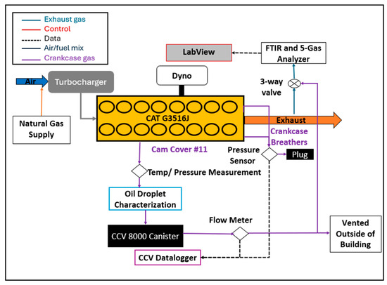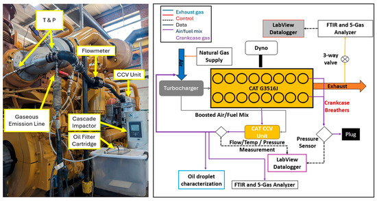Figure 5 presents a schematic of the Direct OCV configuration, detailing the CCG flow path and instrumentation used to measure CCG pressure, temperature, flow rate, and chemical composition. All measurements were conducted at three engine speeds: 1400 RPM, 1200 RPM, and 1050 RPM, and three engine loads: 50%, 75%, and 100%. Each gas sample point was a five-minute average.