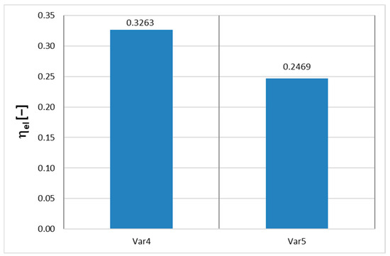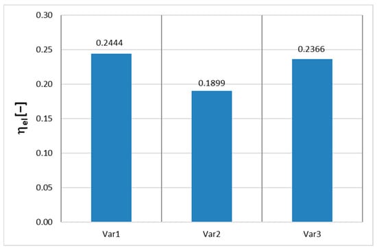 The analyses also considered the impact of variations in the individual efficiency values of key cycle components on its performance, determining the system’s sensitivity. A summary of the parameter variations entered and the obtained efficiency results is presented in Table 2.