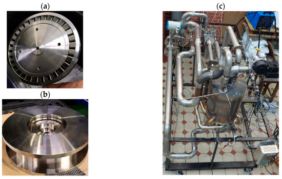 Isothermal microturbine rotor (a), casing (b), and test rig (c).
