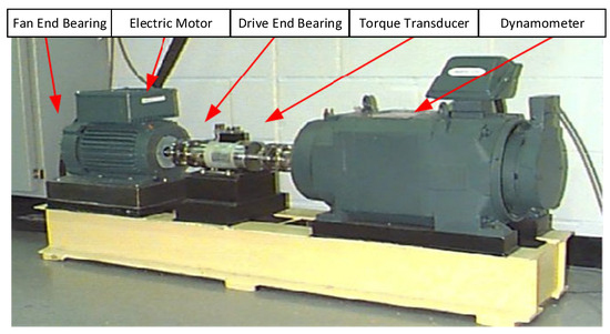 To verify the fault diagnosis performance of the SL-GPN model under complex operating conditions, experiments were conducted using the rolling bearing datasets provided by Case Western Reserve University (CWRU). This dataset was collected from the bearing fault test bench illustrated in Figure 4. The experimental setup primarily consists of a motor, drive-end bearing, fan-end bearing, torque sensor, and dynamo meter. By applying loads ranging from 0 to 3 horsepower (HP), motor speeds between 1797 rpm and 1730 rpm were simulated to generate bearing faults on the inner race, outer race, and rolling elements of both the drive-end and fan-end bearings. The fault diameters include 0.007 inch, 0.014 inch, and 0.021 inch. The data acquisition sampling frequency is 12 kHz.