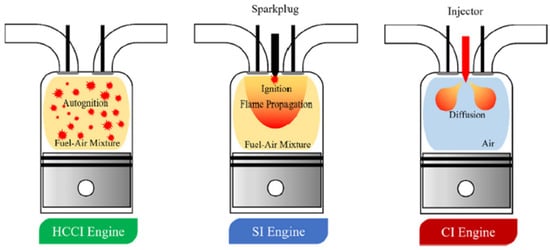 - Yao, M.; Zheng, Z.; Liu, H. Progress and recent trends in homogeneous charge compression ignition (HCCI) engines. Prog. Energy Combust. Sci. 2009, 35, 398–437. [Google Scholar] [CrossRef]