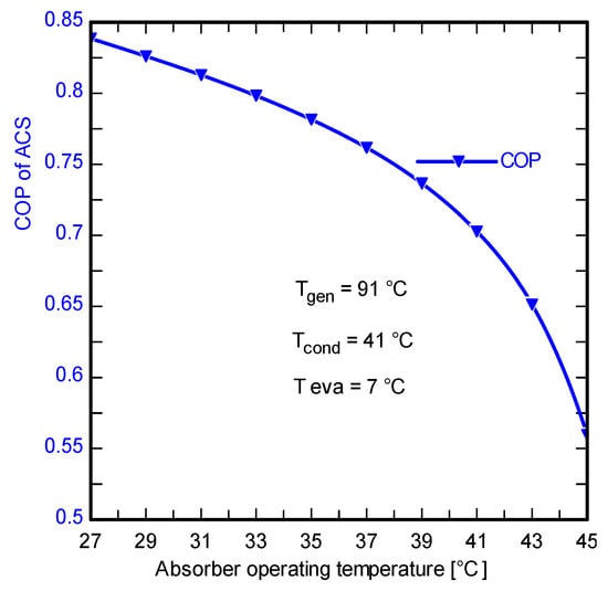 With equal absorber and condenser operating temperatures, the system seems to have higher performances, hence, it is important to control the cooling water flow to assume the operating temperature of these two components.