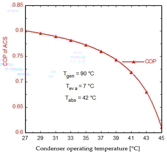 As absorption and condensation are exothermic processes, it is imperative to correctly evacuate the heat released during these processes. A low cooling water mass flow rate implies high irreversibility of the absorber, so the cooling flow should be automatically adjusted when the ambient temperature increases.