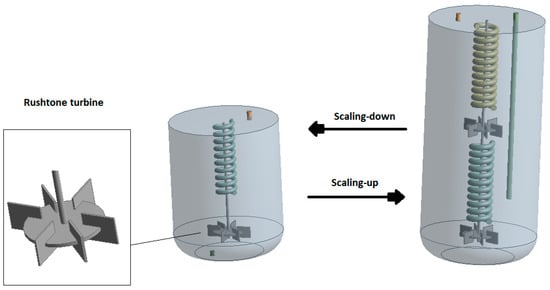 - Campolo, M.; Paglianti, A.; Soldati, A. Fluid dynamic efficiency and scale-up of a retreated blade impeller CSTR. Ind. Eng. Chem. Res. 2002, 41, 164–172. [Google Scholar] [CrossRef]
