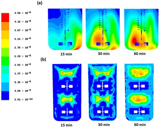 - Wodołazski, A. Co-simulation of CFD-multiphase population balance coupled model aeration of sludge flocs in stirrer tank bioreactor. Int. J. Multiph. Flow 2020, 123, 103162. [Google Scholar] [CrossRef]