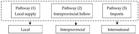 These pathways correspond to local, interprovincial, and foreign consumption scopes, respectively.