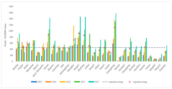 The “who consumes, who pays” principle suggests that a region’s demand can drive oil consumption in other areas through domestic supply chains. Although not directly consumed locally, this embodied oil transfer implies shared environmental responsibility. Analyzing these flows reveals China’s interregional economic ties and energy distribution patterns, highlighting development imbalances and consumption disparities. This study adopts a consumption-based perspective to quantify embodied oil flows in China’s domestic trade. By comparing interprovincial inflow volumes across different time points, we can assess the spatiotemporal evolution patterns of these flows. Figure 2 illustrates the scale and trends of consumption-side embodied oil inflows across China’s 30 provinces from 2007 to 2017. The key findings are as follows.