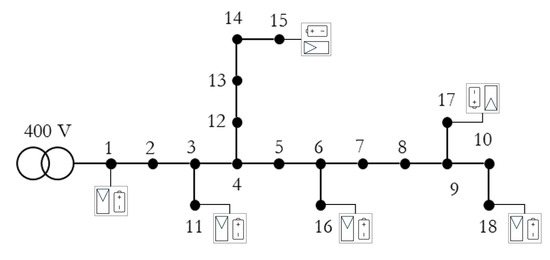 - Nour, A.M.; Helal, A.A.; El-Saadawi, M.M.; Hatata, A.Y. A control scheme for voltage unbalance mitigation in distribution network with rooftop PV systems based on distributed batteries. Int. J. Electr. Power Energy Syst. 2021, 124, 106375. [Google Scholar] [CrossRef]