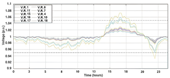 - Zeraati, M.; Hamedani Golshan, M.E.; Guerrero, J.M. Distributed Control of Battery Energy Storage Systems for Voltage Regulation in Distribution Networks with High PV Penetration. IEEE Trans. Smart Grid 2018, 9, 3582–3593. [Google Scholar] [CrossRef]