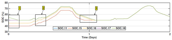 - Meng, T.; Lin, Z.; Wan, Y.; Shamash, Y.A. State-of-Charge Balancing for Battery Energy Storage Systems in DC Microgrids by Distributed Adaptive Power Distribution. IEEE Control Syst. Lett. 2022, 6, 512–517. [Google Scholar] [CrossRef]