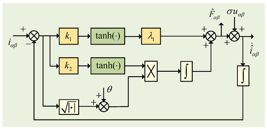 The structure diagram of the adaptive super-twisting sliding mode observer designed according to (14a–c)–(16) is shown in Figure 4.