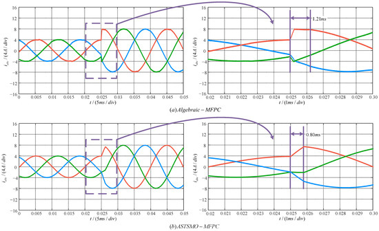 Diagram of reference current step: (a) Algebreic-MFPC strategy; (b) ASTSMO-MFPC strategy.